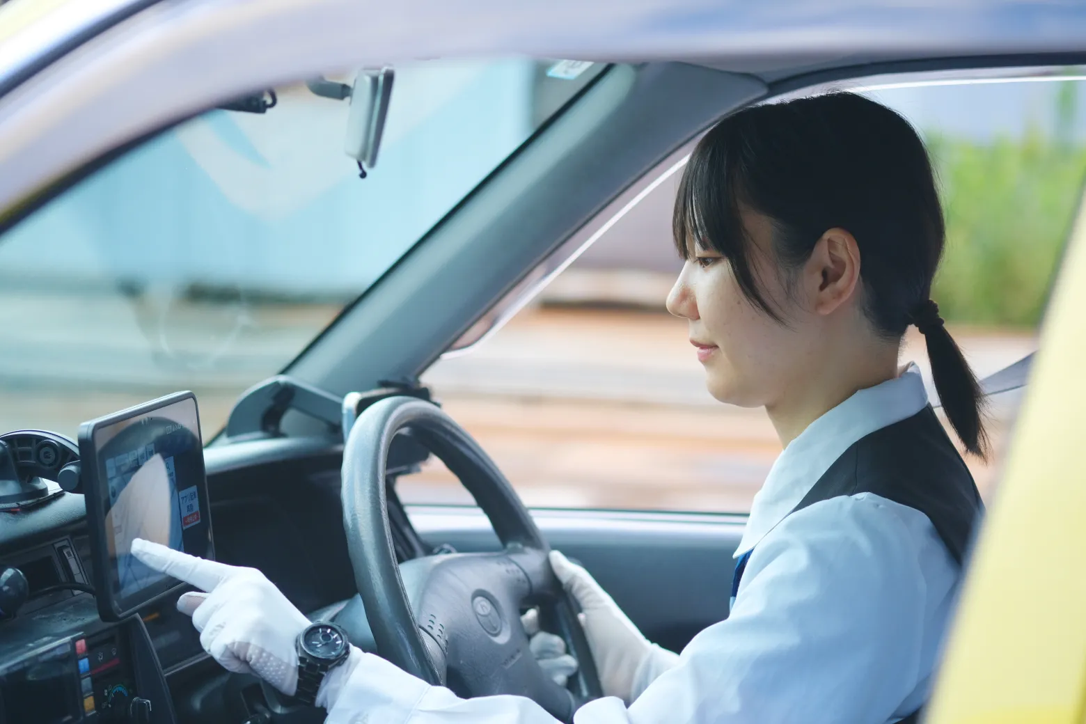 最初の挨拶でその後の雰囲気が決まるので、お客様をお乗せする時の第一声は明るくハキハキと、を心がけています。私からは積極的に話しかけませんが、お客様から話しかけていただけると本当に嬉しいです。お礼のお言葉や、道選びを褒めてもらえた時は、心の中でガッツポーズ。これまで、直接お客様と関わる経験が少なかったので、こうした触れ合いが一番の楽しみになっています。お客様を目的地まで安全にお送りすることはもちろん、その短い時間が少しでも心地よいものとなるように、きめ細かな接客に努めています。