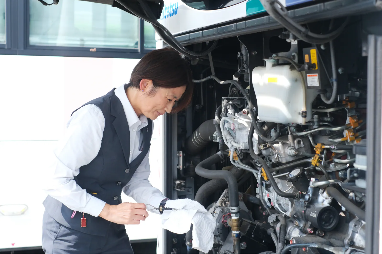 子どもが小学生の頃、「ママ、大きなバスを運転してすごいね!」と褒めてくれたことを今も覚えています。正社員として働く決意をした時、子どもに楽しそうに働く姿を見せたいと強く願っていたので、それを叶えられたと実感しましたね。改めて、お客様のたくさんの笑顔に触れられるバス運転士の仕事に誇りを感じています。子育て中の方に伝えたいのは、できないことはないということ。研修期間からサポート体制が整い、未経験でも挑戦できる環境があります。私もママ運転士として、後に続く方々の手本になれたら。誇れる仕事に就ける喜びを、ぜひ感じてほしいです!